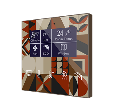 Kapazitive Taster der Flat-Serie mit Backlight, Näherungs- und Feuchtigkeitssensor, flachem Design (9 mm) und komplett frei gestaltbarer Oberfläche. Erstellen Sie einzigartige, eigene Kompositionen, inkl. Bildern, Symbolen, Texten oder Logos, die anschließend auf hoch festes Glas gedruckt werden. Intuitive Raumsteuerung mit 5 Tasten und bis zu 8 Indikatorfeldern im Display. Die beleuchteten Tastensymbole verfügen über automatische Helligkeitsanpassung dank integr. Helligkeitssensor und Näherungssensor. Der Flat Display v2 verfügt über integrierten Feuchtigkeits- und Temperaturssensor und Thermostatfunktion, 2 analog/digitale Eingänge für potentialfreie Sensoren, Temperaturfühler oder Bewegungsmelder. Zubehör: Temperaturfühler, Bewegungsmelder.