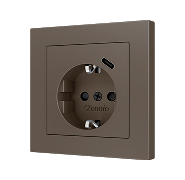 Schuko Steckdose mit USB C, mit Zennios Schalter- & Steckdosenserie integrierbar in einem eleganten und zeitlosen Design im Format 55 x 55 mm. Sie schließen bündig mit den Rahmen ab und lassen sich perfekt mit den kapazitiven Tastern Flat 55 und Tecla 55 einsetzen.