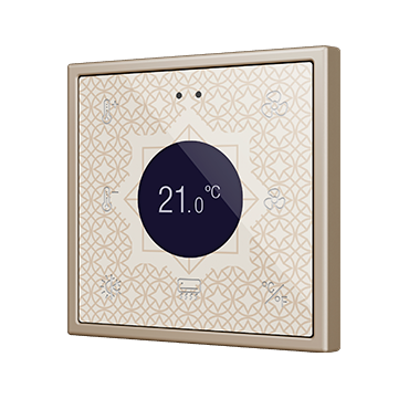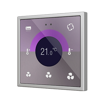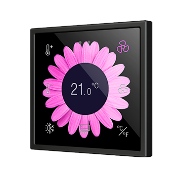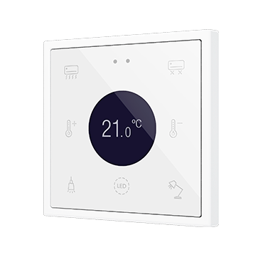 Panel táctil capacitivo retroiluminado en RGB con display redondeado de la familia Flat 70 (para marcos 70 x 70 mm), con sensor de proximidad y totalmente personalizable. Enrasado con la familia de marcos y mecanismos Zennio ZS70. Cualquiera puede crear composiciones únicas incluyendo imágenes, iconos y textos. Su personalización está basada en una impresión profesional sobre cristal templado de gran resistencia. El control de la estancia se simplifica con 4 botones disponibles y hasta 4 indicadores pueden mostrarse en su display central. Los iconos retroiluminados en RGB regulan su brillo con el sensor de luminosidad ambiente y se atenúan cuando el usuario no es detectado por el sensor de proximidad. Flat RGB 70 Display incorpora un termostato, además de 2 entradas analógico-digitales que pueden ser configuradas como entrada binaria para sensor o pulsador libre de potencial o como sonda de temperatura. Instalación en caja de mecanismos estándar con marcos 70 x 70 de 1/2/3/4 módulos. Es compatible con KNX Seguro.