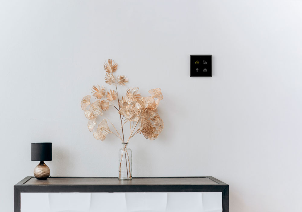 Fully customisable glass touch keypads with front images and backlit icons that adapt to ambient light, creating a relaxing and comfortable environment
