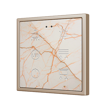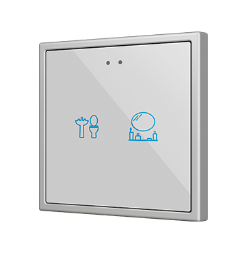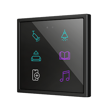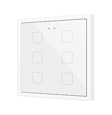 Customisable RGB backlit capacitive touch switches in the Flat family, with proximity sensor and flat design (9 mm), sized 70 x 70 mm, to be combined with 70 x 70 mm frames from Zennio and Jung LS series. Its customisation is printed on a high-strength tempered glass, which allows a total customization of the product background, including images, icons, texts, etc. 1, 2, 4 and 6 button versions available that share the same application program, all with settable functions and RGB backlit icons, that attenuate it when the user is no more detected by its proximity sensor. Flat RGB 70 incorporates an internal temperature probe and a thermostat, as well as 2 analog-digital inputs to be configured as binary inputs, sensors, push buttons, temperature probes or motion detectors. It is compatible with KNX Secure.