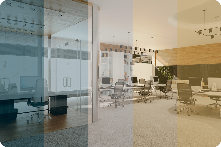 Enhance employee comfort and energy efficiency by adapting to natural daylight. Centralized control enables simple and automated space management